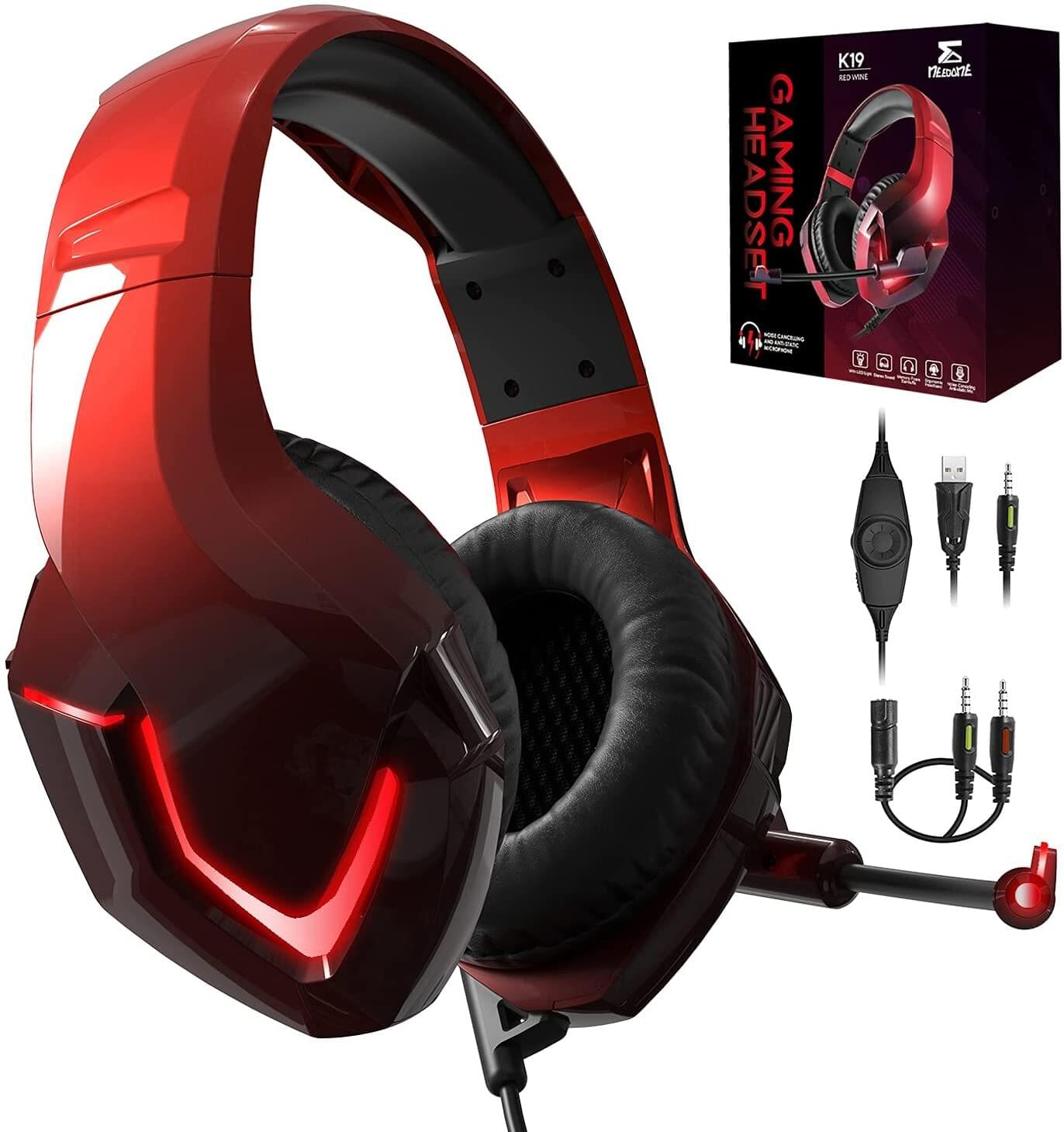Casque Gamer PS4 avec Micro Over-Ear Audio Filaire Casque Gaming NEEDONE K19 pour PC Nintendo Switch Xbox One Laptop Tablet avec Microphone Réglable Anti Bruit Son Stéréo Basse Lumière LED Rouge